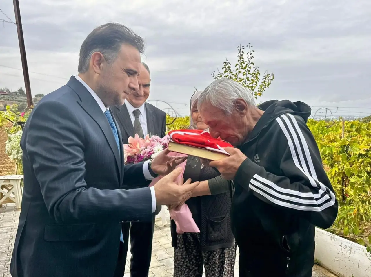 Ziyarette şehit ailesiyle bir süre sohbet eden heyet, şehit ailesine Türk bayrağı, Kur’an-ı Kerim ve çiçek takdim etti.