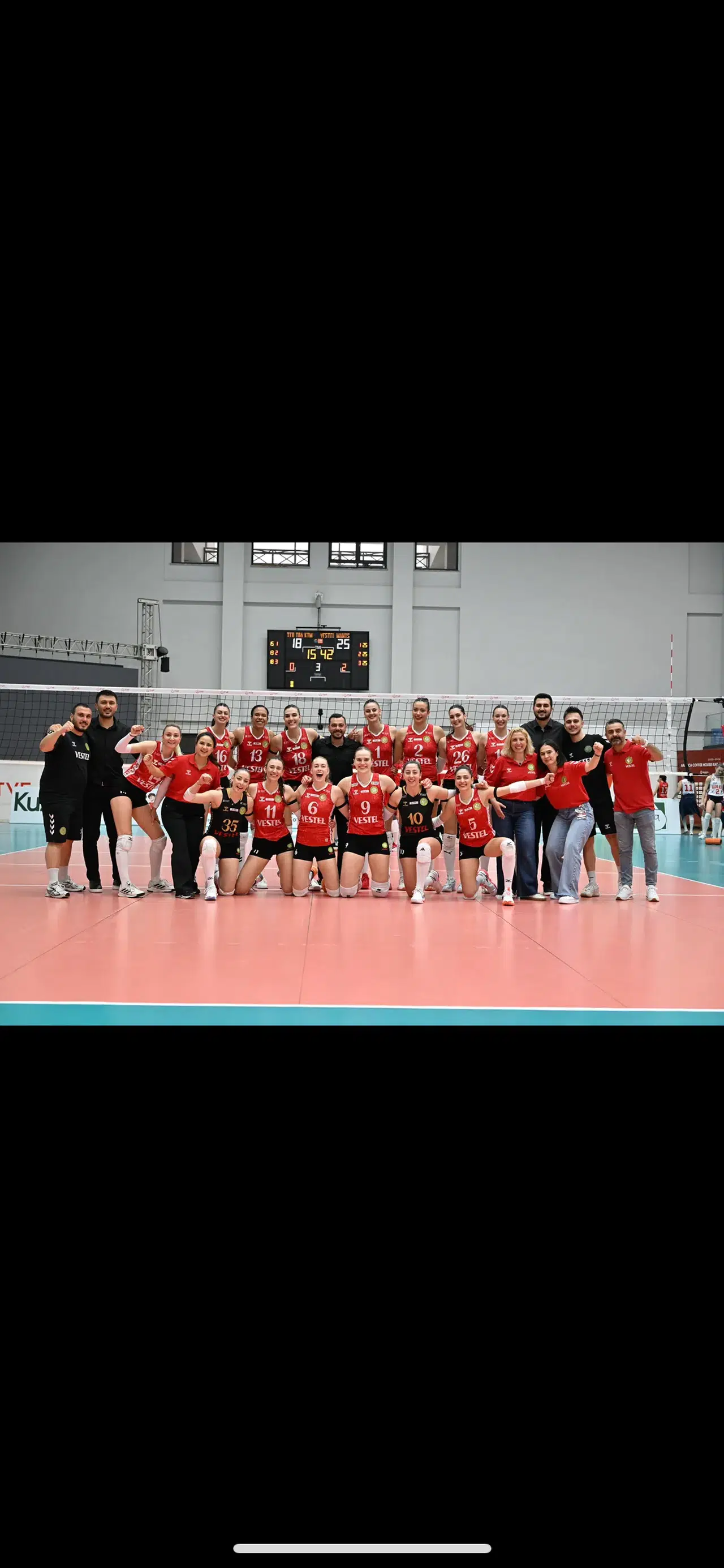VESTEL Manisa Büyükşehir Belediyespor Kulübü Kadın Voleybol Takımı, play-off yarı finallerindeki ikinci sınavını da başarıyla geçti. Yeşil-beyazlılar, İBA Kimya TED Ankara Kolejlileri karşısında etkili bir oyun ortaya koyarak mücadeleden 3-0 galip ayrıldı. Karşılaşmanın setleri 25-15, 25-13 ve 25-18 sonuçlandı. Baştan sona üstün bir performans sergileyen Manisa temsilcisi, bu sonuçla play-off yarı finallerinde 2’de 2 yaparak play-off finaline yükselmeyi garantiledi. Karşılaşmayı, Kulüp Asbaşkanı Murat Kümüştekin ile Yönetim Kurulu Üyeleri Nabi Başbay ve Barış Ali Çınar da tribünden takip ederek takıma destek verdi.