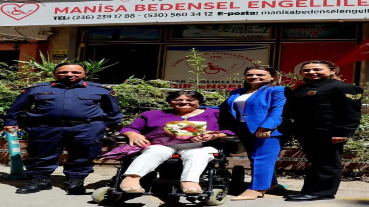 Manisa Bedensel Engelliler Derneği Başkanı Yasemin Yıldız, Engelliler Haftası nedeniyle eşi Mevlüdiye Şen ile birlikte kendilerini ziyaret eden Jandarma İl Komutanı Tuğgeneral İlhan Şen'e teşekkür etti.
