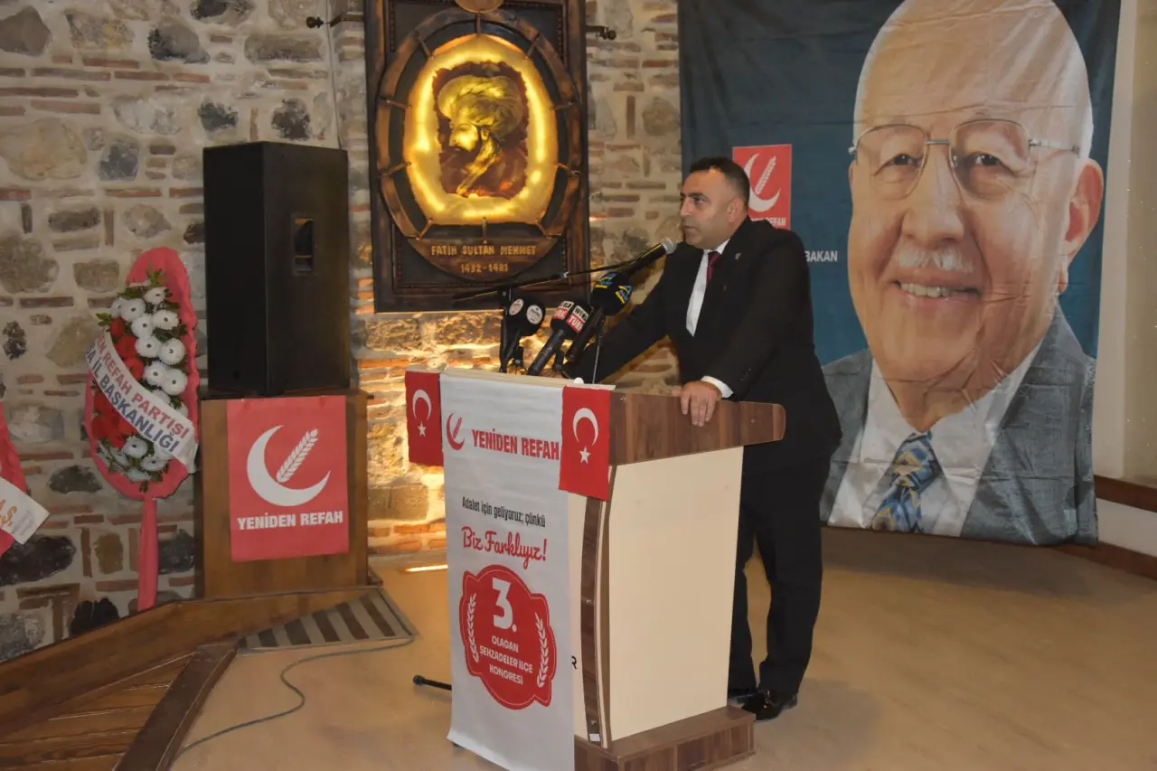 Yeniden Refah Partisi Şehzadeler İlçe Başkanı İbrahim Şahin, konuşmasında Milli Görüş’ün temel değerlerine dikkat çekti. Şahin, “Bugün burada bir siyasi partinin kongresinden öte, Milli Görüş ateşini Şehzadeler şehri Manisa’dan yakıyoruz. Aziz milletimizin huzuru ve refahı için ‘Önce ahlak ve maneviyat, paylaşımda adalet’ diyoruz. Sorunların farkındayız, çözümün Yeniden Refah olduğunu biliyoruz” dedi.