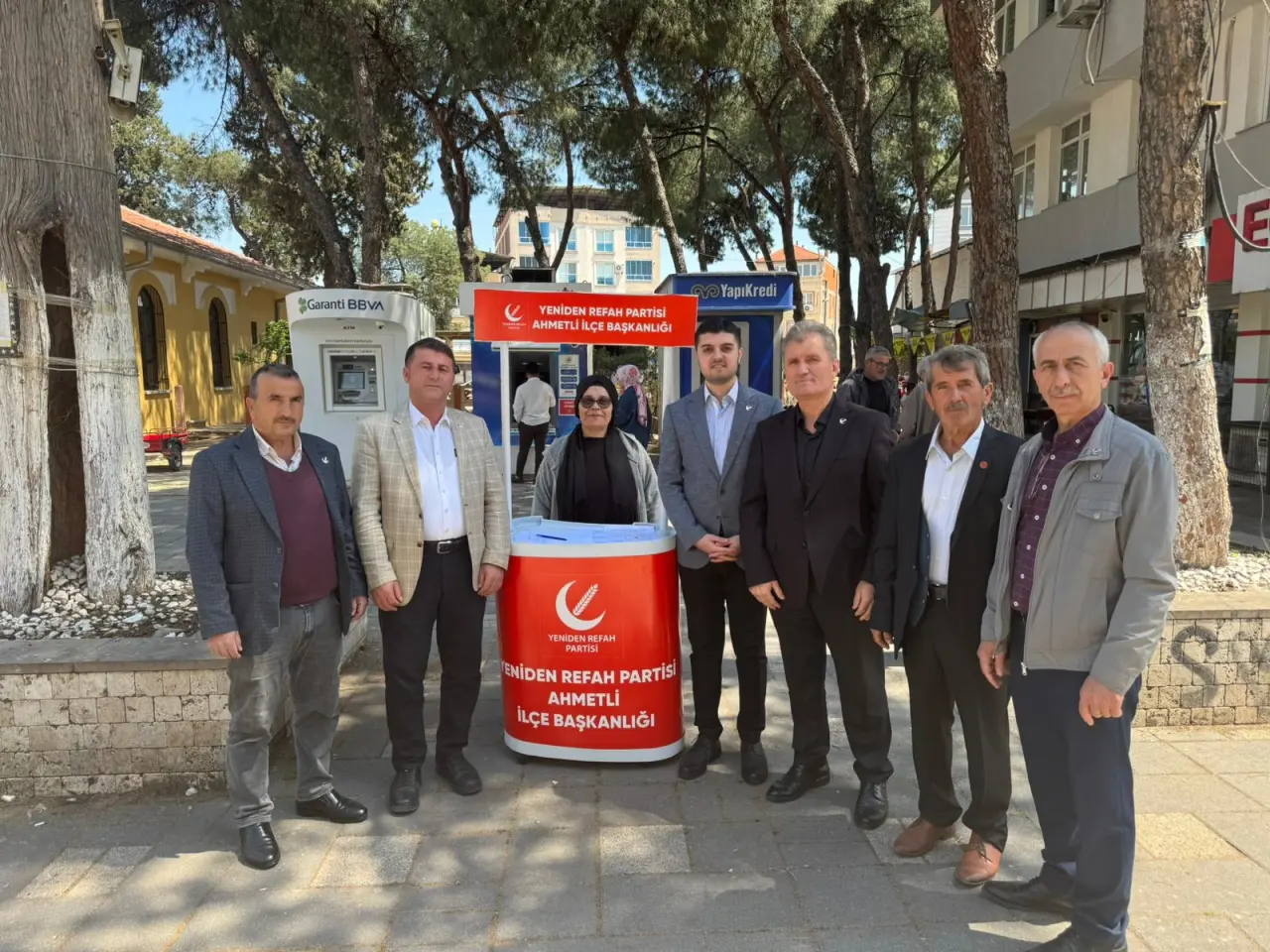 Yapılan açıklamada şu ifadelere yer verildi: Milli iradeye sahip çıkmak adına gerçekleştirdiğimiz imza kampanyamızda, Genel Merkez Gençlik Kolları Başkan Yardımcımız Enes İzci, İl Başkan Yardımcılarımız Ramazan Akar, Saim Öndeç, Ahmetli İlçe Başkanımız Muzaffer Yetiş ve kıymetli ilçe yönetim kurulu üyelerimizle birlikte sahadaydık. Bu anlamlı çalışma vesilesiyle yüzlerce vatandaşımızın imzasını alırken, davamıza yeni üyeler kazandırmanın da gururunu yaşadık. Atılan her imza; adaletin, vicdanın ve milletimizin kararlı duruşunun en net göstergesidir. Kampanyamız kapsamında milletimizin ortak talebini bir kez daha güçlü şekilde dile getirdik: Kürecik Radar Üssü kapatılsın, İsrail kör olsun; Bakü-Tiflis-Ceyhan Boru Hattı kapatılsın, İsrail’de hayat dursun. Aziz milletimizin desteğiyle yürüdüğümüz bu yolda, aynı inanç ve azimle çalışmaya devam edeceğiz. Teşekkürler Ahmetli."