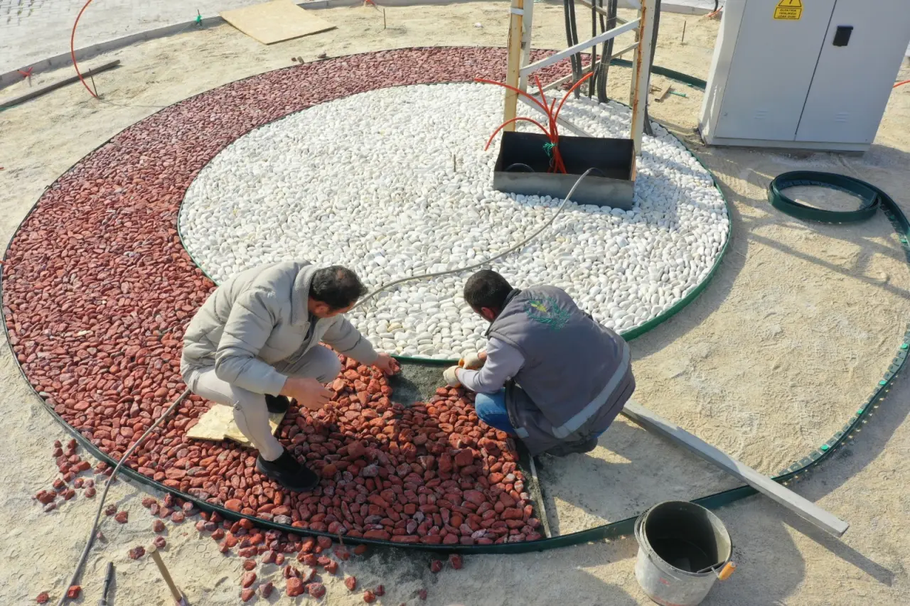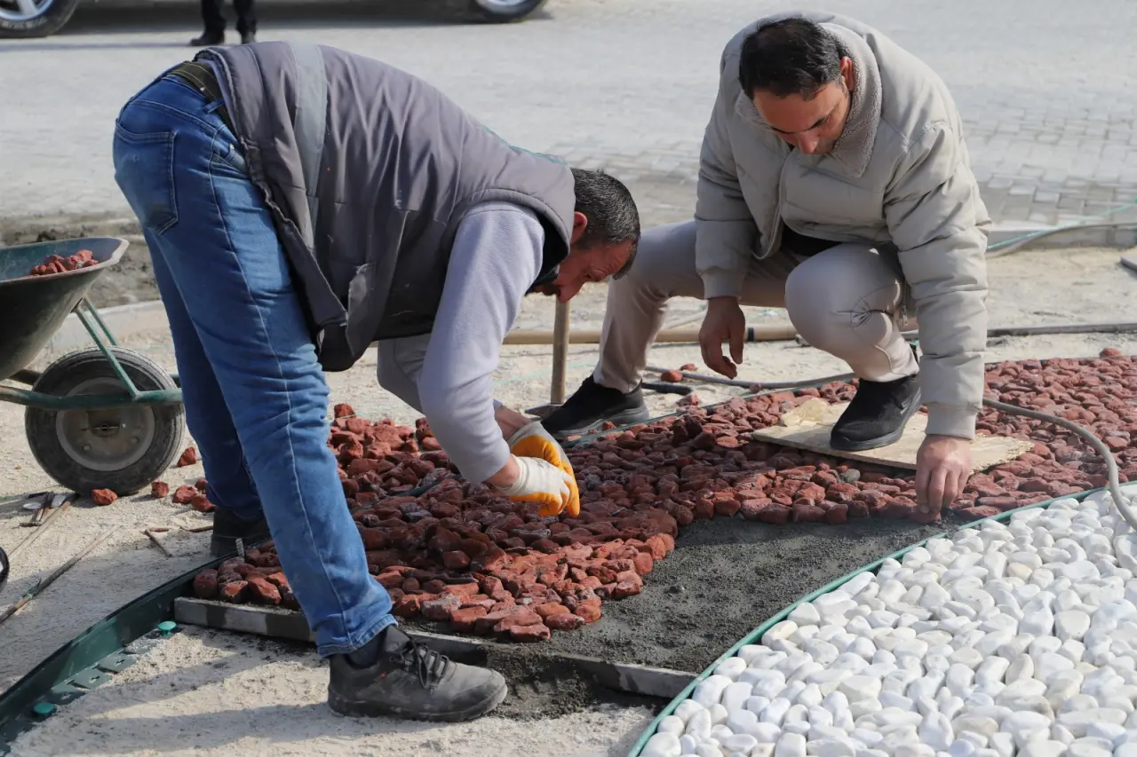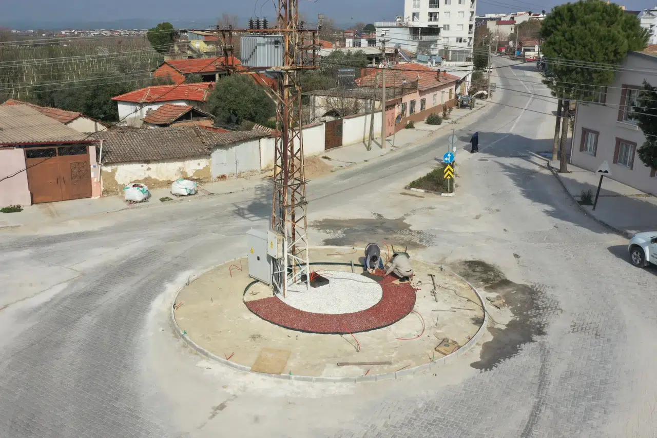 Belediye ekipleri tarafından yürütülen çalışmalar kapsamında kavşak alanı bordürlerle düzenlenirken, dekoratif taş uygulamalarıyla estetik ve modern bir görünüm kazandırılıyor. Çalışmaların tamamlanmasıyla birlikte bölgenin hem görsel açıdan daha düzenli hale gelmesi hem de trafik güvenliğine katkı sağlanması hedefleniyor.