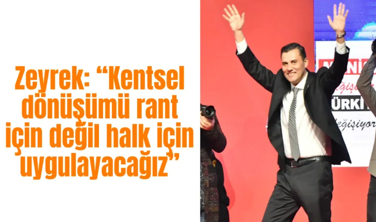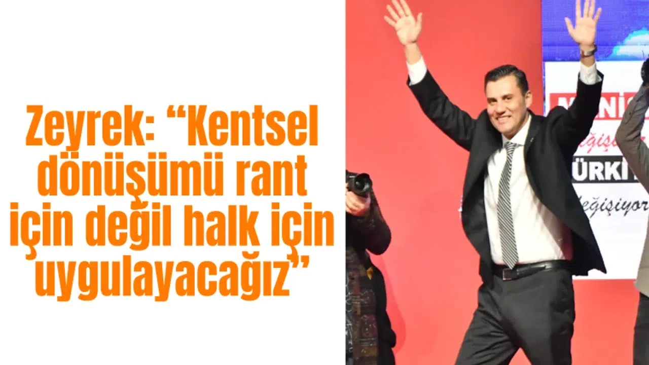Zeyrek, "Manisa'da doğmuş, bu topraklarda büyümüş, eğitimini almış, yine bu topraklarda alın teri dökmüş, ekmeğini kazanmış bir kardeşinizim. Manisa’nın dağına, ovasına, suyuna sevdalanmış, bu sevdayla Manisa'yı Manisa yapan değerleri yaşatmaya çalışan sizlerden biriyim. Tam da bu nedenle 'Yeni başkan güçlü Manisa' sloganıyla çıktığımız yolda Manisa'nın ferdi olarak hep birlikteyiz. Memleketi için kaygı duyan, dertlenen, hemşerilerinin acısını kendi acısı gibi hisseden sizden biri, aslında hepinizin sesiyim. Elini taşın altına koymaktan çekinmeyen, ulu önder Gazi Mustafa Kemal Atatürk'ün yolunda Manisa’mızın hak ettiği değeri yaşaması için çalışmaktan asla vazgeçmeyecek Cumhuriyet evladıyım. Allah nasip ederse 58 gün sonra Manisa'ya hak ettiği hizmeti verecek olan Manisa Büyükşehir Belediye Başkanı'yım. Manisa varlık içinde yokluk çeken bir il. Manisa'da tarım var ama üretime destek yok. Manisa'da iş gücü var ama istihdam üreten yok. Manisa'da tarih var, doğa var, kültür var ama turizm yok. Manisa'da genç var, kadın var, işgücünde erkek var ama bunları yönlendirebilecek yönetim anlayışı yok. Manisa'da Türkiye'nin en pahalı suyu var. Manisa'da Türkiye'nin en sorunlu ulaşımı var. Manisa'da Türkiye'nin en sıkıntılı altyapısı var. Manisa'da Türkiye'nin en kirli havası var. Manisa'da yoksulluk var, yolsuzluk var. Yorgun, yılgın, halkından uzaklaşmış bir belediye ve kendi rantı dışında hiçbir şey düşünmeyen bir belediye başkanı var. Genel Başkanımız Sayın Özgür Özel 'değişim' diyerek bir yola çıktı ve partimizde başarılı oldu. Değişim sadece parti içinde bir değişim değil, değişim kentlerimizde olacak. Kentlerimizin yönetim şeklinde ve yaklaşımımızda da yaşanacak. Biz sadece kendini ve çevresine sağladığı rant dışında başka bir şey düşünmeyen bir belediye başkanını değiştirmek için gelmiyoruz. Belediye yönetimindeki anlayışı değiştirmek için de geliyoruz. Halktan kopuk, halkının sorunlarını bilmeyen, kendinden başkasını düşünmeyen başkan yerine halkın parasını halkı için harcamaya, dertlere derman olmaya geliyoruz.