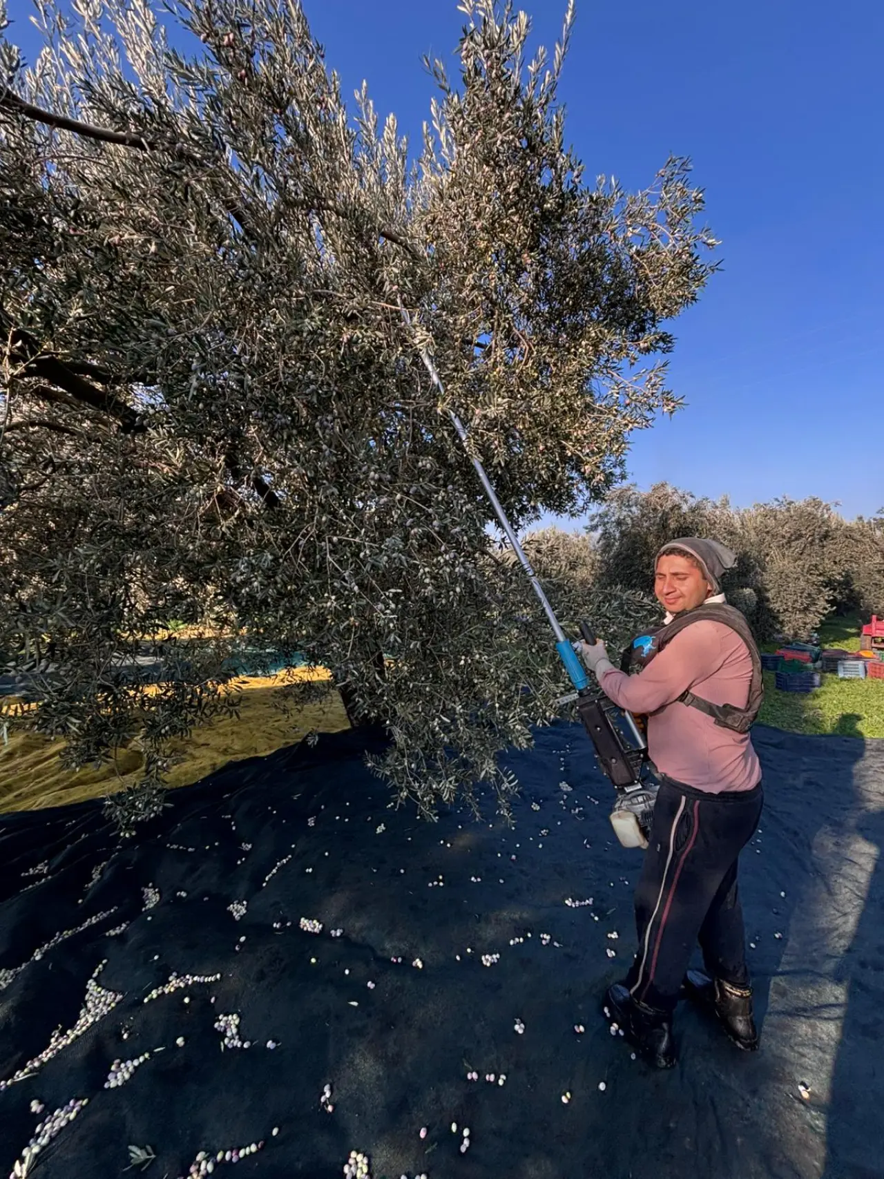 Zeytinlerin olgunluk seviyesine göre toplandığını anlatan Özkan, ilk aşamada bahçelerin dolaşılarak olgun zeytinlerin tek tek seçilip toplandığını söyledi. Devamında ise işçilerin desteği ve yardımcı ekipmanlarla hasadın hızlandığını, zeytin toplama makinesinin de devreye girdiğini belirtti.