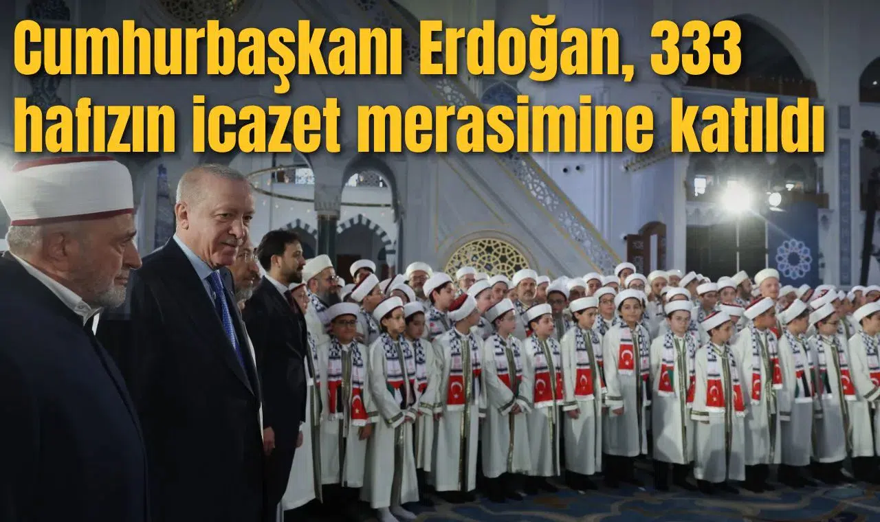 Cumhurbaşkanı Recep Tayyip Erdoğan, Büyük Çamlıca Cami'nde gerçekleştirilen Üsküdar Milli Eğitim Müdürlüğü'ne bağlı İmam Hatip Okulları ve Üsküdar Müftülüğüne bağlı Kur'an kursları bünyesinde hafızlık eğitimlerini tamamlayan 333 Hafız'ın icazet merasimine katıldı.